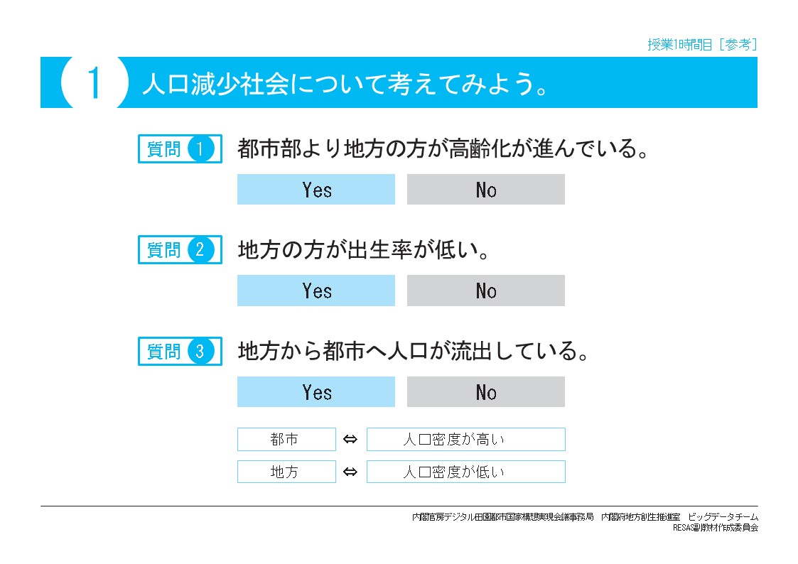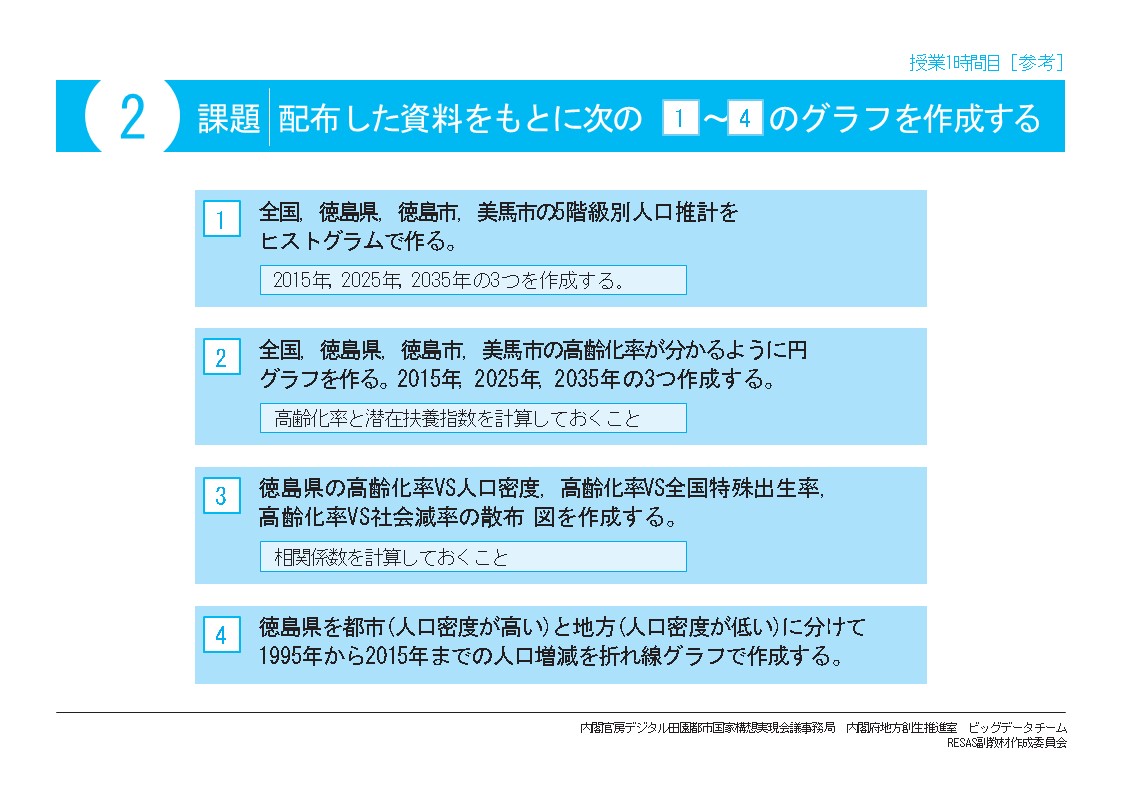 RESASを授業で初めて活用する場面を想定し、初歩的な内容を扱っています。