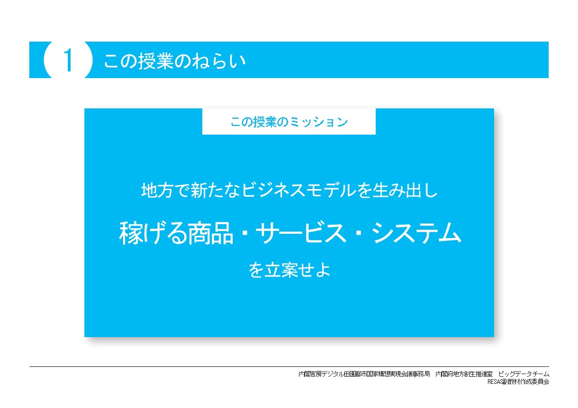 日本各地で地域について学習する場面を想定し、その地域の基幹産業や地域課題を基に新たなビジネスを創造する想定で内容を取り扱っています。